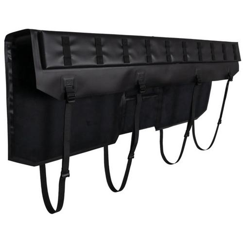 The full-size tailgate pads hold up to six bikes, the mid-size tailgate pads hold up to five bikes, and the half-pad holds up to 2 bikes. All are securely held in place with sturdy nylon straps. We’ve even designed a version for those tricky, curvy tailgates.