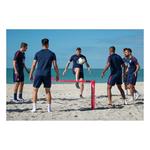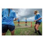 The 16B6 All-Surface Soccer Tennis is 2'8"H x 10'W and encourages players to enhance basic skills such as trapping, heading and deftness of touch while having fun. The all-surface capabilities of the frame allow this version of soccer tennis to be played on grass, turf, indoor surfaces, and even in the parking lot at a local tailgate. With its steel frame containing an elastic connection cord, the All-Surface Soccer Tennis can be set-up and broken down in minutes. All-Surface Soccer Tennis units can be attached via Velcro to lengthen the court for more players. A carry bag is included for easy transportation and optimal organization.