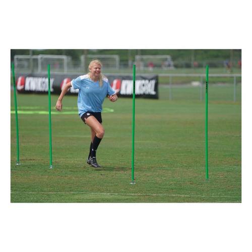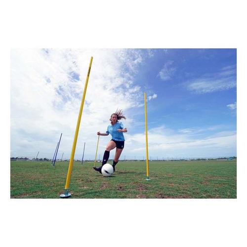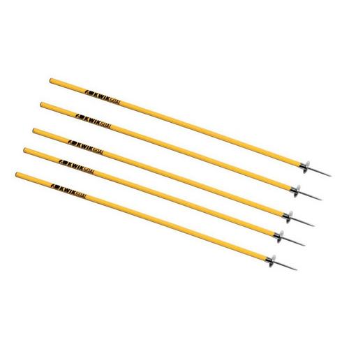 Kwik Goals Coaching Sticks are designed to help improve a players foot speed, basic ball control skills, reaction time and overall agility. These sticks are secured into the ground using a natural surface only ground peg and can be arranged in a variety of ways dependent upon the specific training drills. The 16B10 Coaching Sticks include a set of 6 coaching sticks and are available in 5 colors