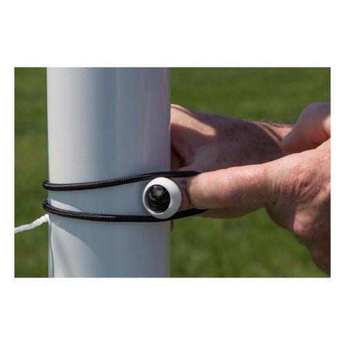 The Deluxe Bungee Net Fasteners are designed to secure nets to any soccer goal with 4" x 2" or 4" x 4" square posts, and/or a round post that is greater than 3". The bungee net fasteners feature a thick, black, elastic cord with knobs. The durable, elastic cord is UV-resistant which helps increase the longevity of each fastener.