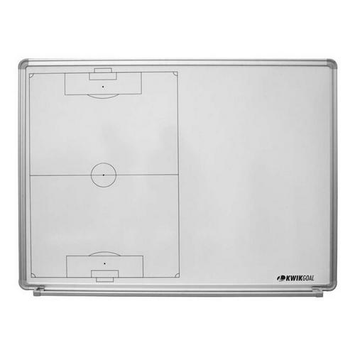 This wall mounted Kwik Goal Dry Erase Board 18B1103 is great for the locker room or coach's office. Use the full field diagram to set tactics and the blank space for training/game notes and roster information. A tray is included for dry erase pen and eraser storage.