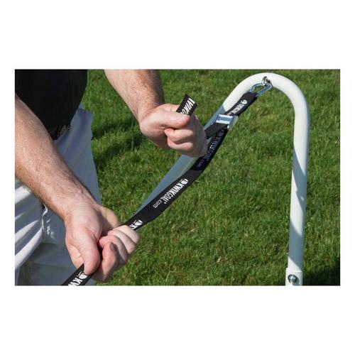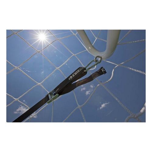 One set of the 10B4406 includes two support straps, which are recommended for securing one pair of soccer goal nets. Available in one size only. For smaller goals, simply cut the strap to the desired length (leaving 12"-18" of excess), then rethread and attach using the buckle.