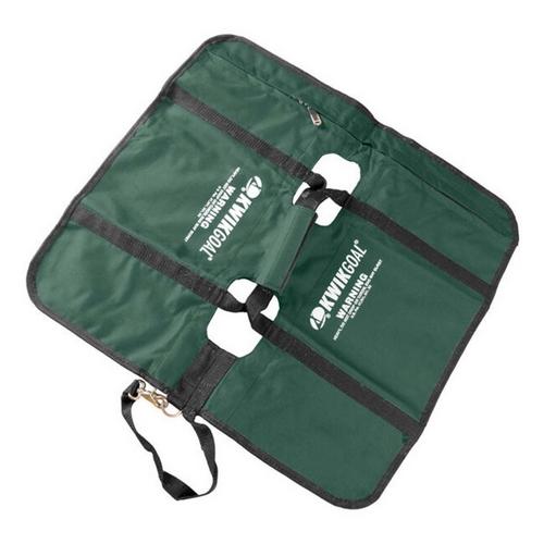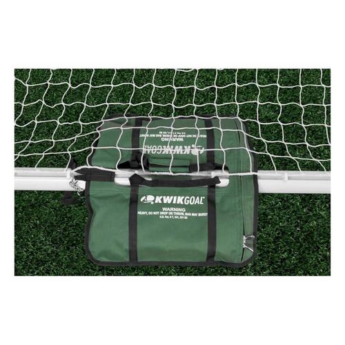 The 10B1605 Saddle Anchor Bag is made from a heavy-duty, woven polyester and is designed to anchor a soccer goal onto any type of surface, indoors or out. To properly install this anchor bag system simply: 1.) Pour sand (not included) into both sides of the bag 2.) Secure sand in bag by completely zippering bag closed 3.) Place the bags in the back corners of the base frame (this location allows for maximum counter balance) A key feature of the 10B1605’s is the amount of space between the handle and the bag – this space allows the net to be properly clipped into place without sacrificing any of the security the bags are intended to provide. Kwik Goal recommends six (6) of the 10B1605 Saddle Anchor Bags to properly anchor one full-sized 8’ x 24’ Kwik Goal soccer goal. To find out the proper amount of the 10B1605’s needed to anchor your goal, please contact your goal’s manufacturer.