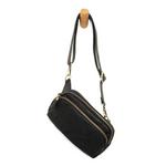 A sling or a belt bag, you decide! Upgrade your athleisure with our compact and super versatile Kylie. With a top zip closure and a front zip pocket you will have enough space for your phone, a small wallet and other daily essentials to be stored safely and securely. Crafted in super soft tumbled vegan leather for a casual look and accented with gleaming metal zippers and our signature Joy Susan logo zip pulls.