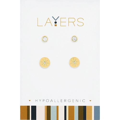 Layers Gold CZ & Studded Sun Duo Earrings