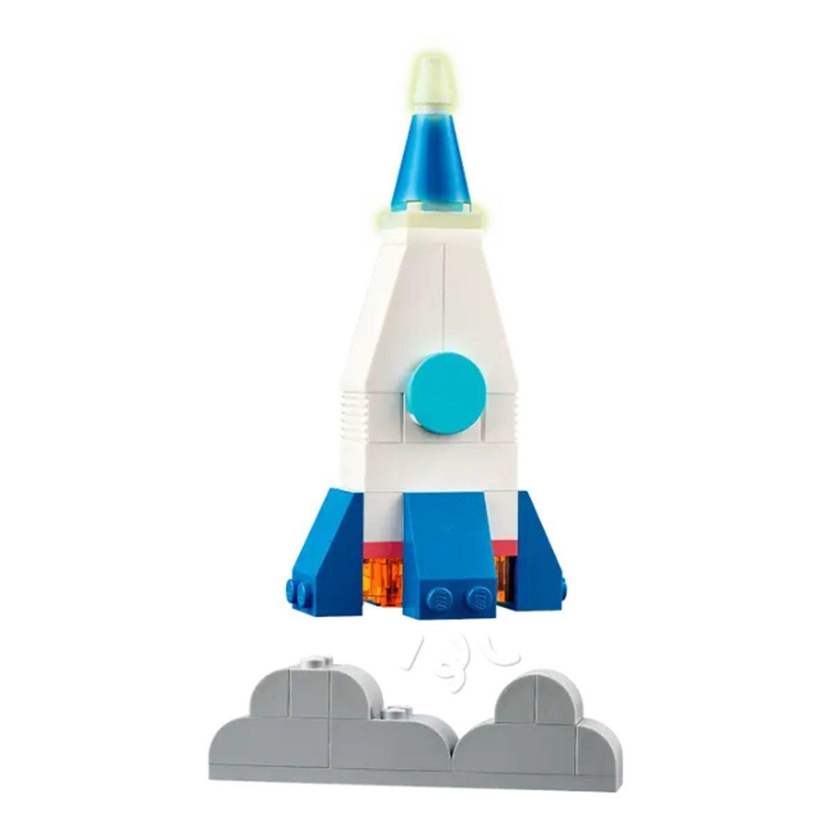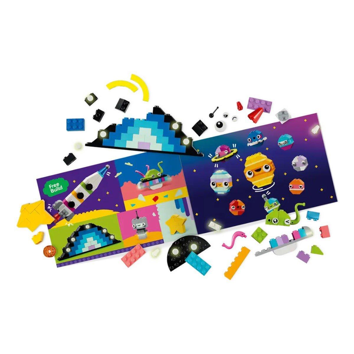 Kids assemble the colorful bricks to build a rocket ship toy, alien, astronaut and a mini solar system including Mars, Earth, the sun and Saturn with its rings. The space models can then be customized using alternative colors, shapes, eyes, expressions and a stand that allows the model to rotate. There are even glow-in-the-dark bricks for nighttime visibility. The cosmic creativity continues with suggestions for alternative builds, including a complete 8-planet solar system. Guides and digital features are also available on the LEGO Builder app.