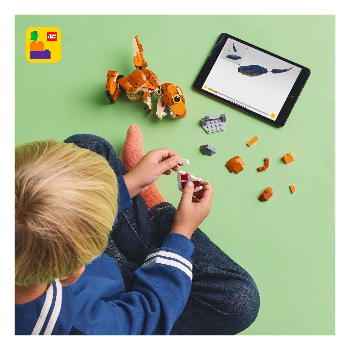 Exciting adventures, nurturing and care-play await young dinosaur fans aged 7 and up in this Little Eatie: T. rex (76967) LEGO® Jurassic World dinosaur toy model full of play-and-display possibilities. First, young dinosaur-tenders can assemble this LEGO dinosaur building kit, before diving into play as they explore the prehistoric world with Little Eatie from Jurassic World: Camp Cretaceous. This Jurassic World: Chaos Theory toy set features a brick-built T. rex figure with an interactive chomping jaw and movable tail and limbs that allow for different poses. Once play is over, the dinosaur toy for boys, girls and fans can be displayed on a shelf or desk.