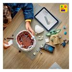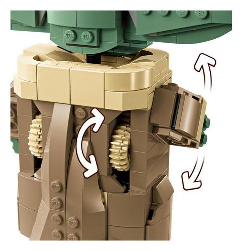 The main model i n this Star Wars collectible toy building set is complemented by a standard-size Grogu LEGO figure in a small buildable hover pram, plus an information plaque to complete a joyful display.