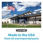 Bring the NBA to your home with the Lifetime 44-Inch Shatterproof Fusion Portable Basketball System. For the first time ever, you can own a full-size residential hoop decorated with graphics representing your favorite NBA team, all while trusting in the U.S.-made quality of Lifetime Products, the top name in residential basketball. Set the powder-coated steel Classic Rim to the height of your choice using the telescoping adjustment mechanism, and set up the hoop anywhere you want it using the fully portable, fully stable heavy-duty Pro Court base. A 2.75-inch round powder-coated steel pole and all-weather net ensure that your hoop stays strong through exposure to the elements. Play to your maximum potential on a 44-inch Shatterproof Fusion Backboard, the official backboard of the NBA. Enjoy the game of basketball at home while repping your favorite NBA team with the Lifetime 44-Inch Shatterproof Fusion Basketball System.
