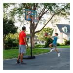 Bring the NBA to your home with the Lifetime 44-Inch Shatterproof Fusion Portable Basketball System. For the first time ever, you can own a full-size residential hoop decorated with graphics representing your favorite NBA team, all while trusting in the U.S.-made quality of Lifetime Products, the top name in residential basketball. Set the powder-coated steel Classic Rim to the height of your choice using the telescoping adjustment mechanism, and set up the hoop anywhere you want it using the fully portable, fully stable heavy-duty Pro Court base. A 2.75-inch round powder-coated steel pole and all-weather net ensure that your hoop stays strong through exposure to the elements. Play to your maximum potential on a 44-inch Shatterproof Fusion Backboard, the official backboard of the NBA. Enjoy the game of basketball at home while repping your favorite NBA team with the Lifetime 44-Inch Shatterproof Fusion Basketball System.