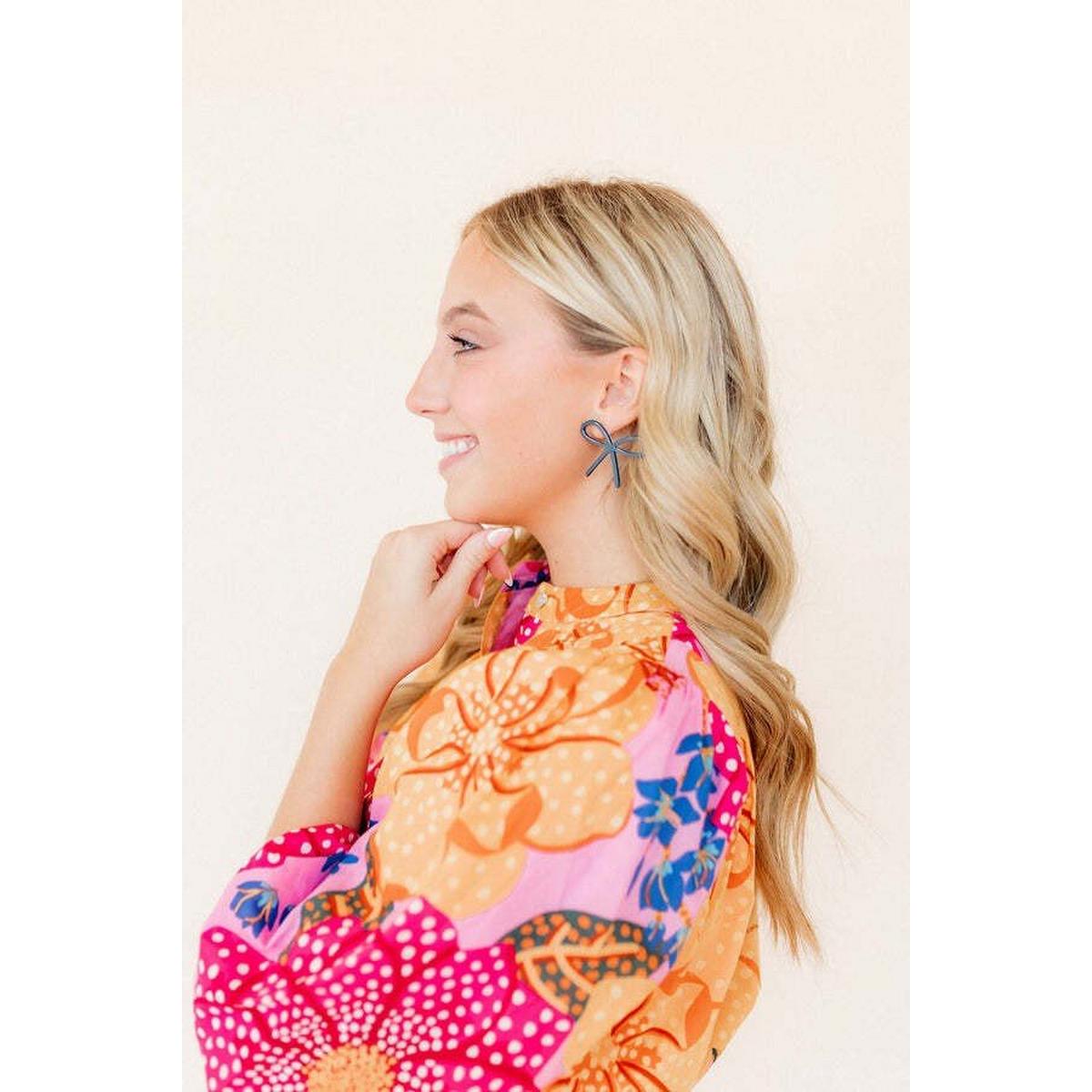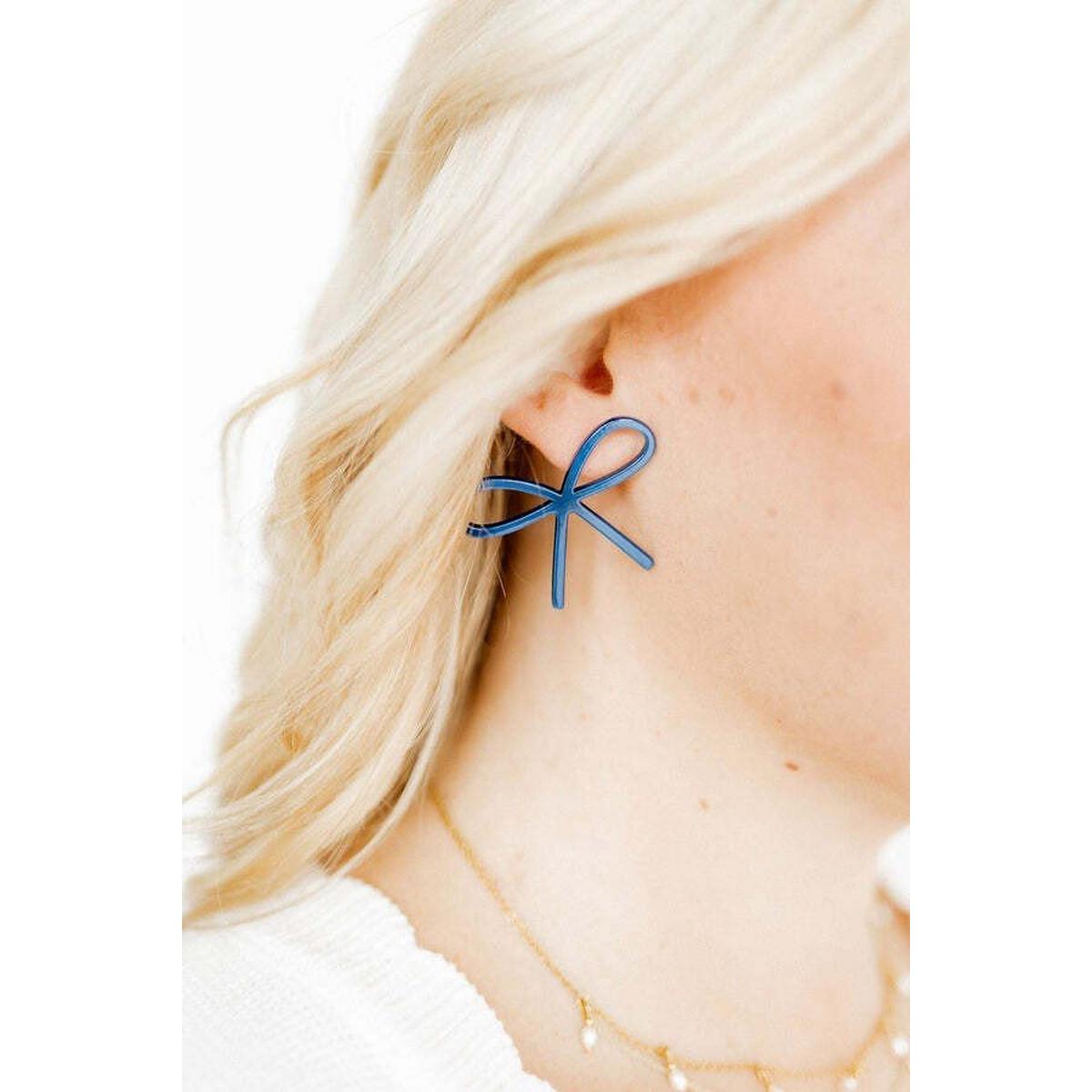 The Lola bow hangs at an angle on the ear with a right and left stud.