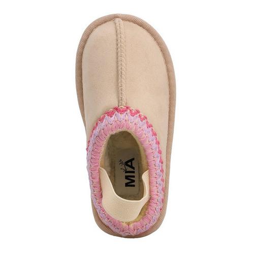 Her easy choice for style and comfort. This slip on mule with comfort footbed, stylish trim will go with trendy jeans, leggings and so much more making it the shoe your toddler will wear again and again.