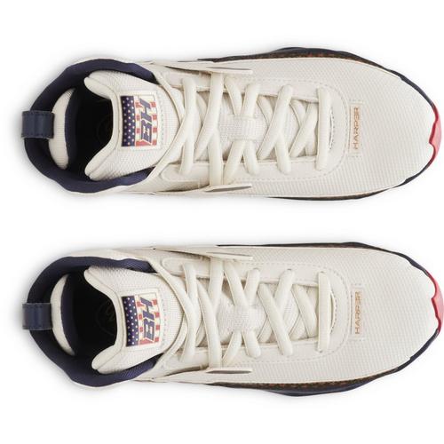 Bryce Harper never fails to bring the big energy to the diamond, and now your young athlete can too with the Little Kids' Under Armour Harper 10 RM Jr. LE USA Molded Baseball Cleats. Designed for the smallest playmakers, these cleats feature a striking limited-edition USA design that stands out from the crowd. The lightweight synthetic upper is breathable yet durable enough to last the whole season, while the full-length EVA midsole offers the plush cushioning needed for all-day comfort. Complete with a redesigned rubber molded outsole for superior traction on any field, these Under Armour baseball cleats help your little one play with confidence and patriotic style.