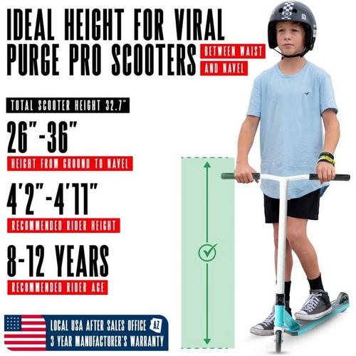 Designed with a compact 4.5” wide alloy deck, 110mm alloy core wheels, and a 24” x 22” low-rise T-bar, the Viral Purge offers balanced geometry for street or park riding. The high-speed ABEC-11 bearings keep you rolling smoothly while the integrated headset and IHC steel fork deliver the responsiveness needed for grinds, whips, and manuals.