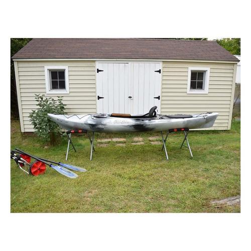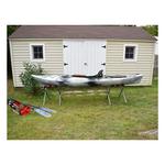 The Elevate™ is a floor based storage system comprised of two individual stands. Great for both large boat storage, or a platform to do repairs and rigging. Produced from high grade marine aluminum with a powder coated top surface to prevent corrosion. These folding stands are light yet rugged and easy to transport. Triple foam pads with dual support straps help grip and stabilize the boat's hull. No assembly required. Lifetime Limited Warranty.