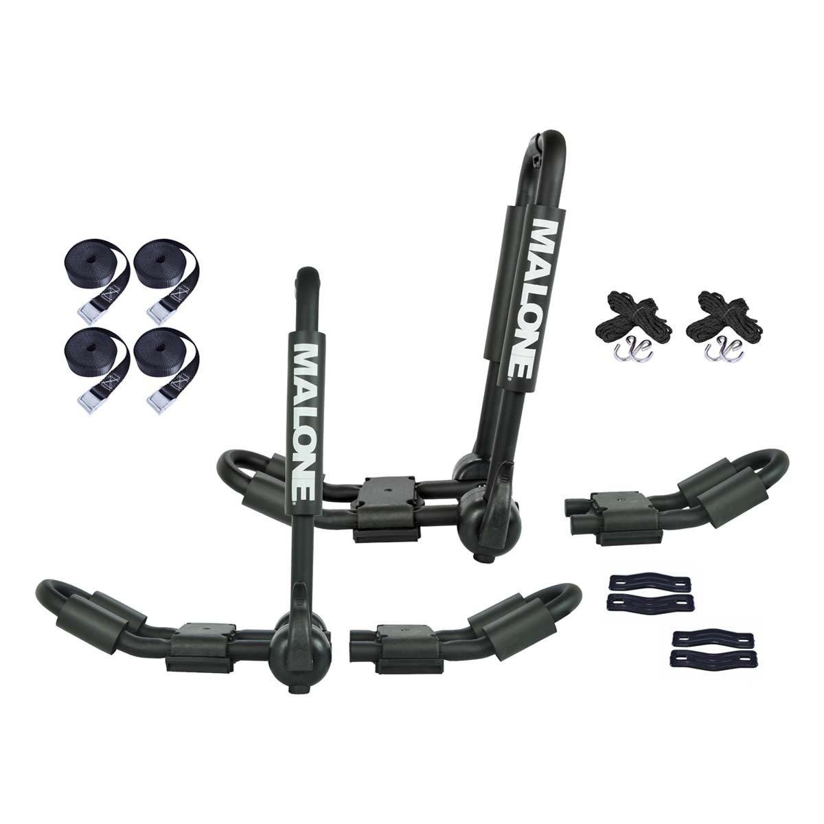 The Malone FoldAway-5 Multi-Rack Folding Carrier offers incredible versatility when hauling your outdoor sporting equipment. With the Malon FoldAway 5, you'll be able to easily haul up to two kayaks, your SUP board, or even a canoe to your destination. Designed with universal mounting adapters, your Malon FoldAway 5 will fit most load bar designs, while the quick-release fold-down frames make for low clearance storing when not in use. To help keep your gear secure, this folding carrier includes 11-foot straps and tie-downs for two boats.