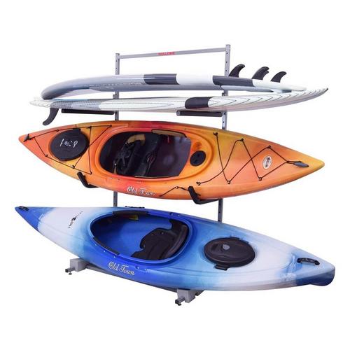 The MPG334 is a two kayak + two SUP self-standing boat storage rack. Each unit is delivered complete with a reinforced frame, assembly hardware, J-Style Holders, SUP-Style Holders and lower frame kayak blocks.