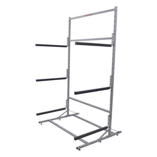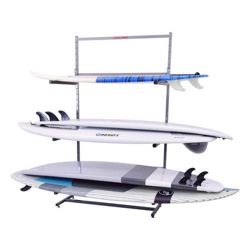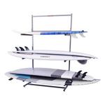 The MPG338 is a six board (SUP or surfboard) self-standing storage rack that can be installed in the garage or boat shed. Each unit is delivered complete with a reinforced frame, assembly hardware and three sets of SUP-Style Holders.