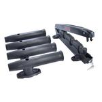 The Striper-4™ safely carries up to four large fishing spinning rod & reels and conveniently attaches to most aftermarket and factory load bars (round, square and oval). Each unit is well built with corrosion resistant components and mounting hardware. These key locking carriers provide ample security to stop opportunity theft while safely transporting expensive rod & reel setups. Comes with assembly tools, keys, instructions and a Lifetime Limited Warranty. Note: Some assembly required.