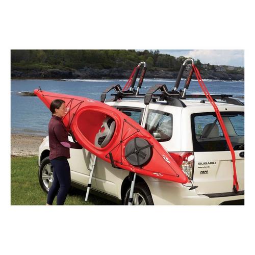 The Telos Lift Assist provides a safe and simple way to load a kayak into J-style carriers from the side of the vehicle. Using quick release hardware and the adjustable extensions, this system can be installed in seconds. Works with the DownLoader and J-Loader kayak carriers. . Self-locking vertical ratchet for ensured safety . Adjustable bottom extensions . Fully padded steel cradles . Quick release detachment system . Conveniently stores in the trunk . Made in the USA . Lifetime Warranty . Length (Extended): 98.25" . Length (Retracted): 58.75” . Weight: 19 lb