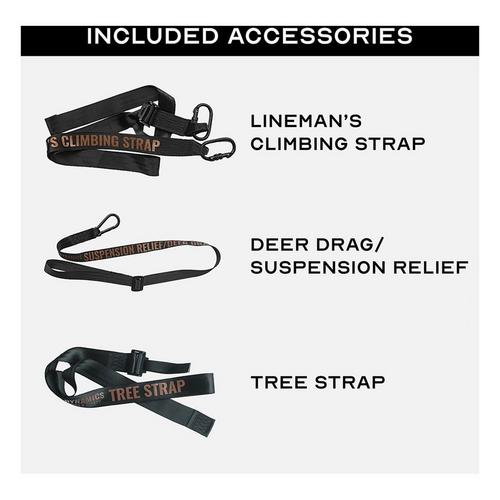 The Malta Hunting Safety Ultralight harness combines modern design with top-notch safety features. It's crafted with breathable padding on the back, shoulders, and legs, durable 1" webbing, and aluminum quick-connect buckles. Designed for hunters, it includes webbing for gear attachment points and clips for hands-free equipment access. Every Ultralight harness kit includes a Tree Strap, Lineman's Climbing Strap, and a versatile Deer Drag/Suspension Relief Strap.