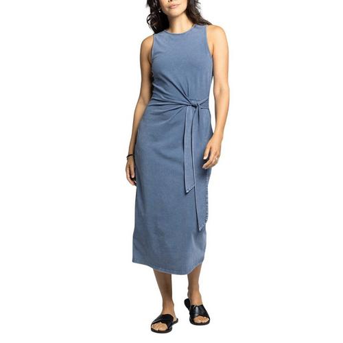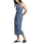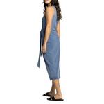 Crew necklineTie waist detailMid length sleeveless dress