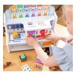 Sweeten up playtime at the Melissa & Doug Wooden Chocolate Factory by mixing and matching pretend play candy shells, tops, and fillings; move the sliding conveyor, flip fidget switches, push a lever, turn a dial to make candies automatically drop into place