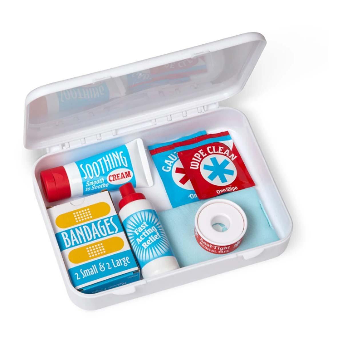 Be prepared to respond to pretend play emergencies! The 25-piece Melissa & Doug Get Well First Aid Kit Play Set offers realistic accessories let little healers help the injured get well! Kids three and older can pretend to set breaks and sprains with a wrist cast, splint, and sling, clean wounds with wipes and gauze, bandage boo-boos, and soothe ailments with pretend play tube, spray bottle, eye dropper, and ice pack. A reusable activity card lets kids keep track of their diagnoses and treatments. All the pieces store in the snap-shut first aid box for easy cleanup. The play set is a fun and engaging way to ease any feelings of stress associated with medical visits, and to encourage nurturing and empathetic play. Spark a child’s creativity and imagination, and inspire young healers for years to come!