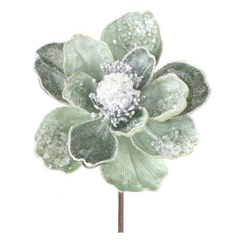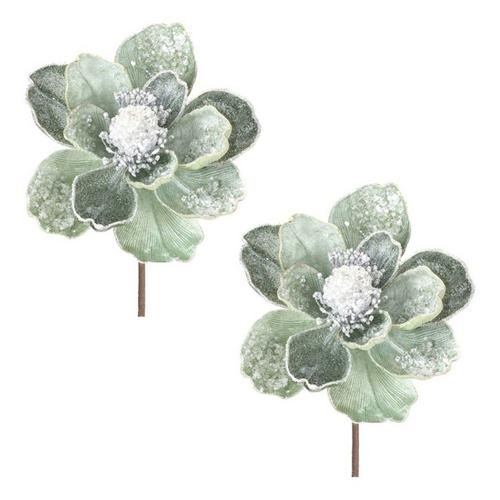 Add a touch of nature to your holiday decor with this beautiful set of Glittered Magnolia Flower Stem. Featuring 2 pieces, this set is a great accent to your Christmas tree, holiday porch pot, or tabletop vase arrangement. The wintry brown and green tones paired with the magnolia flower accent is the perfect combination to create a memorable display. The quality polyester composition is sure to endure for seasons to come. Complete your holiday decor with this stunning set Stems!