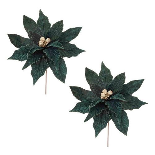 Melrose International 28in Green Poinsettia Stem (Set of 2)