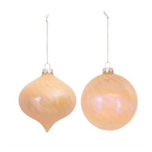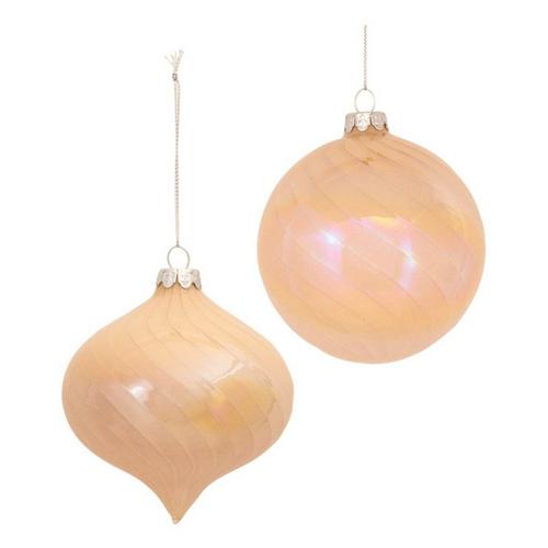 Adorn your Christmas tree and holiday decor with this stunning set of Irredescent Glass Ornaments. Featuring 6 pieces, the unique peach tones paired with the irredescent design is the perfect combination to create a memorable display. The quality glass composition and delicate silver string hanging accent is sure to endure for seasons to come. Whether you're adding a touch of cheer to your home or gifting to a loved one, these ornaments will definitely bring smiles.