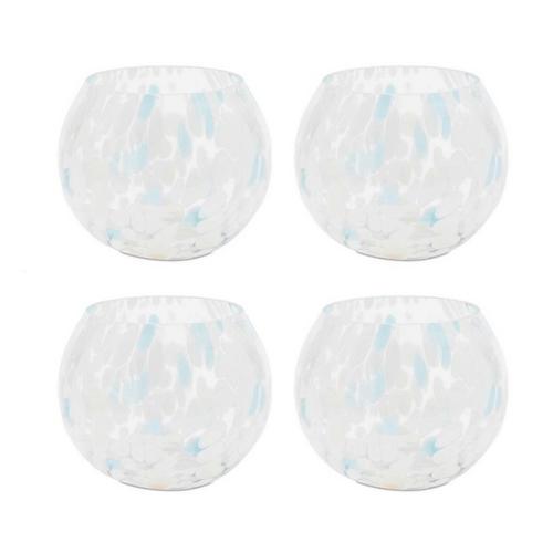 Add a fresh, coastal touch to your décor with the Painted Glass Candle Holder Vase Set. Featuring cool blue and white tones with an abstract painted design, these chic holders enhance your home with a modern feel. The clear finish offers a clean, elegant look, making them perfect for small votives or tealight candles, or even as vases to display a small bunch of fresh flower stems. Sold in a set of four, these versatile holders are a stylish addition to any space.