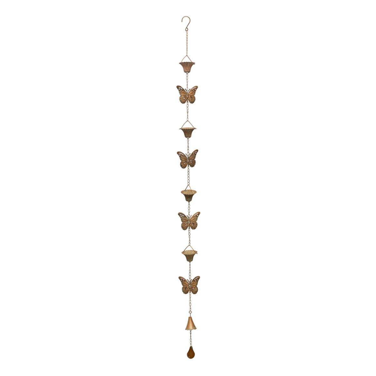Decorate your home or garden with the Copper Butterfly Rain Chain this spring season. Its sturdy metal construction is guaranteed to last through the years. Rainwater collects and drips into the descneding cups on the chain. The soothing sound of water will create a relaxing ambiance in your garden retreat. Featured in Melrose International's "Cottage Garden" collection.