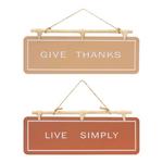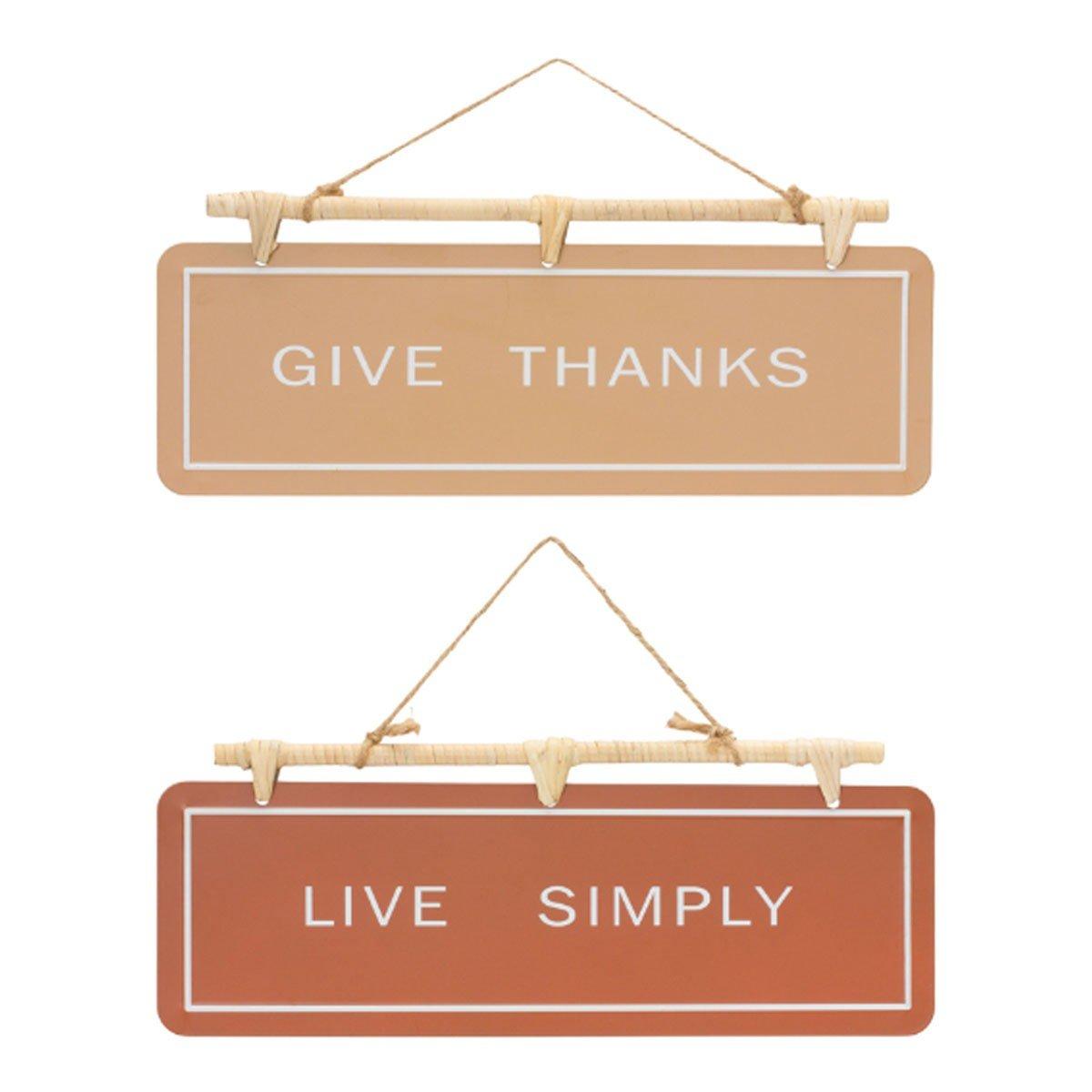 Accent your fall decor with this stunning set of Hanging Fall Sentiment Signs! Our charming decor features festive orange and beige tones with traditional "Give Thanks" and "Live Simply" sentiments that creates a cheerful atmosphere. Crafted with a iron metal, each piece is traditional yet modern, perfect for any home. The rattan hanging accent is the perfect finishing touch. Celebrate the season of gratitude with the Fall Seniment Signs!