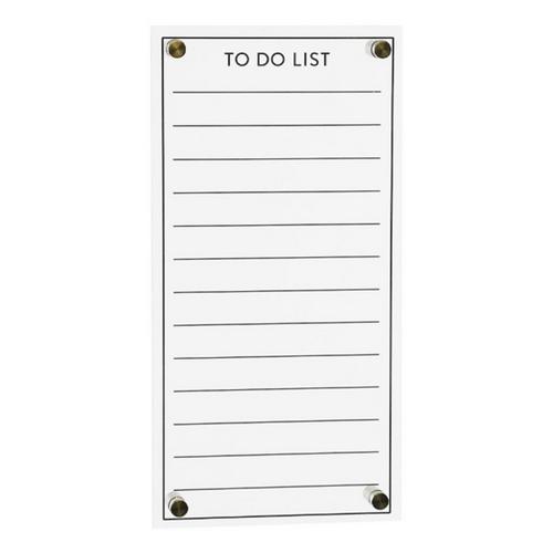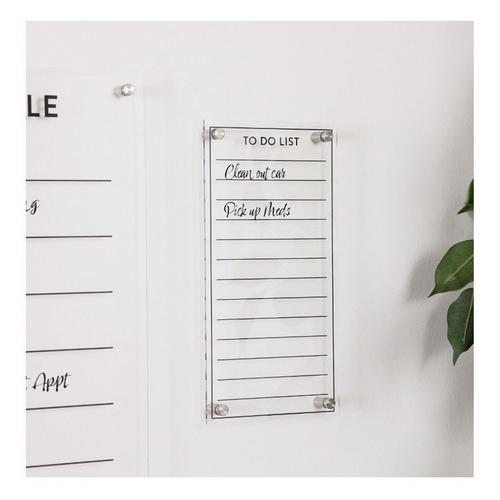 Stay productive with this quality To-Do List Board! Measuring 13" tall, this piece is a great fit for the walls of your home office or desk nook. The classic black and white tones paired with the clear acrylic cover with dry earase functionality is perfect to create a memorable display. Use a colorful array of markers to make this piece pop in your home or office!