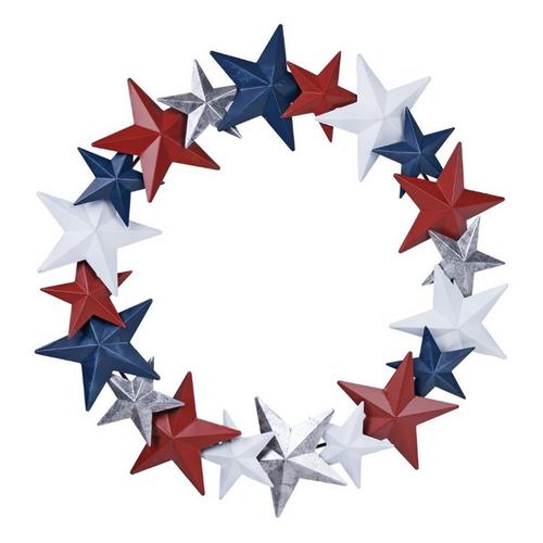 Get your home ready for year with this beautiful Americana Star Wreath. Measuring 18" in diameter, this piece is sure to add a rustic yet modern touch to your Independence Day or Memorial Day decor. The patriotic red, white and blue tones paired with the traditional star design is the perfect combination to create a stunning display. The quality metal composition is sure to last for seasons to come. Hang the piece on your front door or above your living room mantle to make a statement, or gift it to a partiotic loved one to share the beauty.