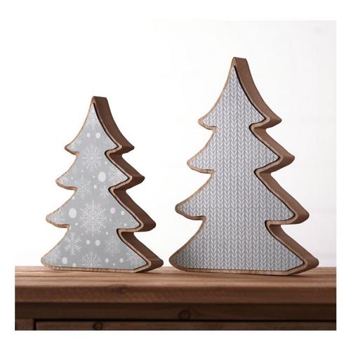 Get ready for the holiday season with this set of Pine Tree Decor! Our decorative tabletop piece is the perfect festive accent for your home, featuring wintry blue and beige tones & sweater and snowflake pattern design. Crafted from solid wood, this piece is sure to bring some holiday cheer to your home. Get it now and get into the holiday spirit!