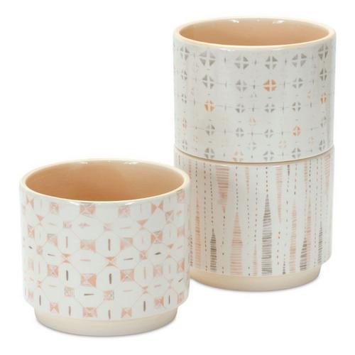 Melrose International Blush Patterned Stacking Pot (Set of 3)