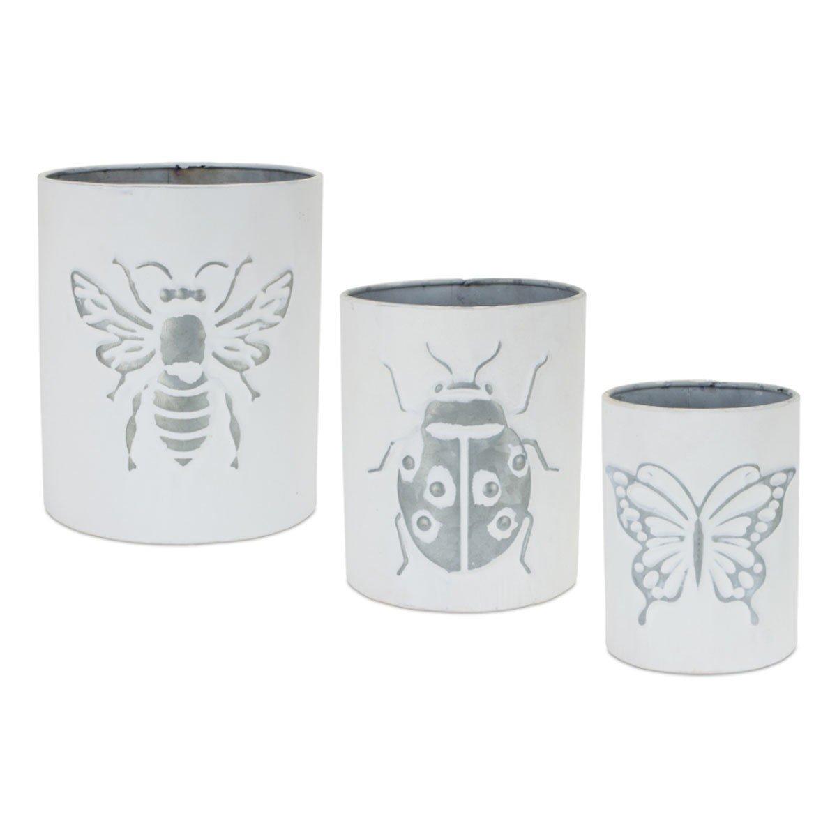 Display your indoor plants in style with this beautiful set of Metal Insect Pots. Featuring three assorted sizes, this set is sure to fit in with any style of home decor. The cool grey and white tones paired with the white-washed finish and insect accent is the perfect combination to create a stunning display. The quality terracotta clay composition is sure to last for seasons to come. Complete the look by adding a potted plant or bunch of dried florals to each pot. The designs include bumble bee, lady bug, and butterfly.