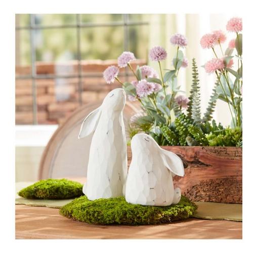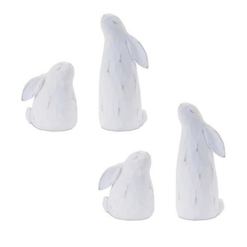 Bring a touch of charm and whimsy to your space with this adorable set of four white bunny figurines. Crafted from durable polyresin and finished in soft white tones with a lightly distressed look, each bunny features a sweet pink nose that adds a hint of playful personality. With two different sizes included, these figures make the perfect addition to bookshelves, mantels, or seasonal displays—ideal for springtime or year-round cottagecore vibes.
