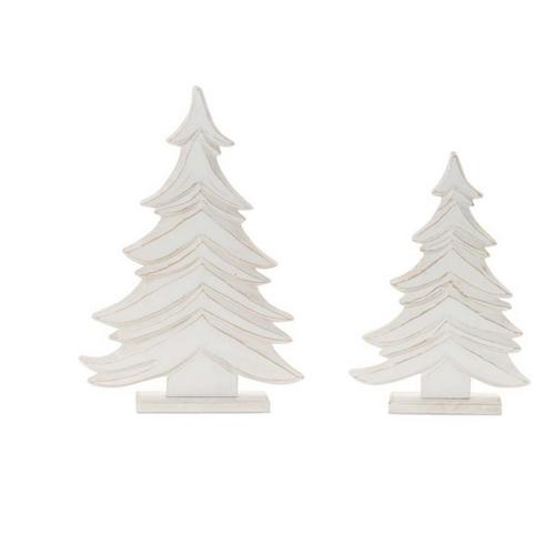 Embrace rustic elegance with this Carved Wood Pine Tree Set. Featuring wintry white and beige tones, these trees are beautifully carved with a rustic pine design and finished with a charming white-washed effect. The set includes two assorted sizes, perfect for adding a natural, textured look to your holiday décor. Display them on your tabletop, shelf, or mantle alongside seasonal floral arrangements or holiday figurines for a cozy, festive atmosphere.