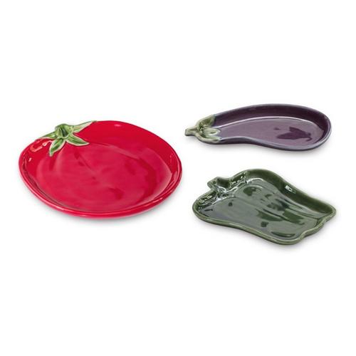 Enhance your kitchen decor with this stunning set of Ceramic Vegetable Plates. Featuring four assorted designs including tomato, green pepper and eggplant, the bright tones paired with the clean glazed finish is perfect to create a memorable display. The quality ceramic composition is sure to endure for seasons to come. Use these pieces as serving plates at your next family get-together to share the beauty with all!