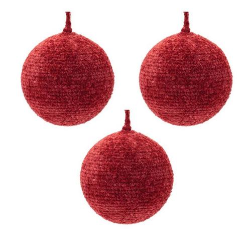 Add a playful and modern touch to your holiday décor with this set of Chenille Ball Ornaments. Featuring festive red tones and a soft chenille fabric design, each ornament showcases a traditional ball shape with a delicate string hanger. Perfect for adding a cozy, textured element to your Christmas tree, wreath, or mantle garland, this set of three ornaments will bring a cheerful and stylish flair to your seasonal display.