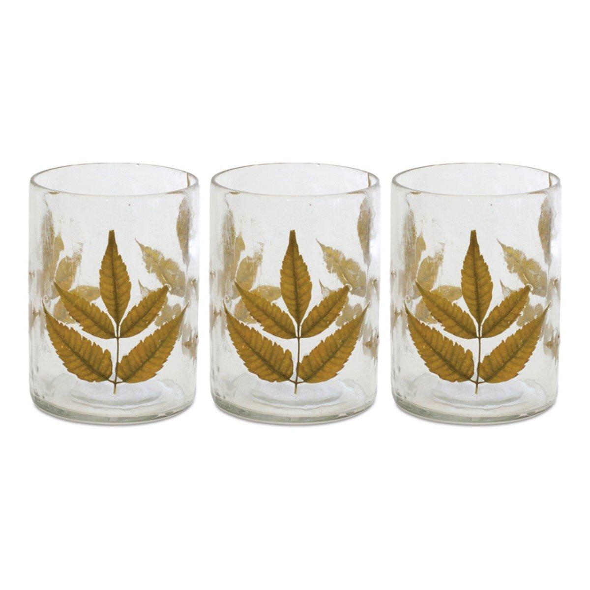 Melrose International Dried Yellow Leaf Glass Candle Holder (Set of 3)
