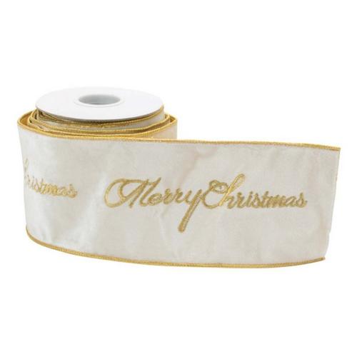 Melrose International Embroidered Merry Christmas Wired Ribbon 4" x 5 Yds.