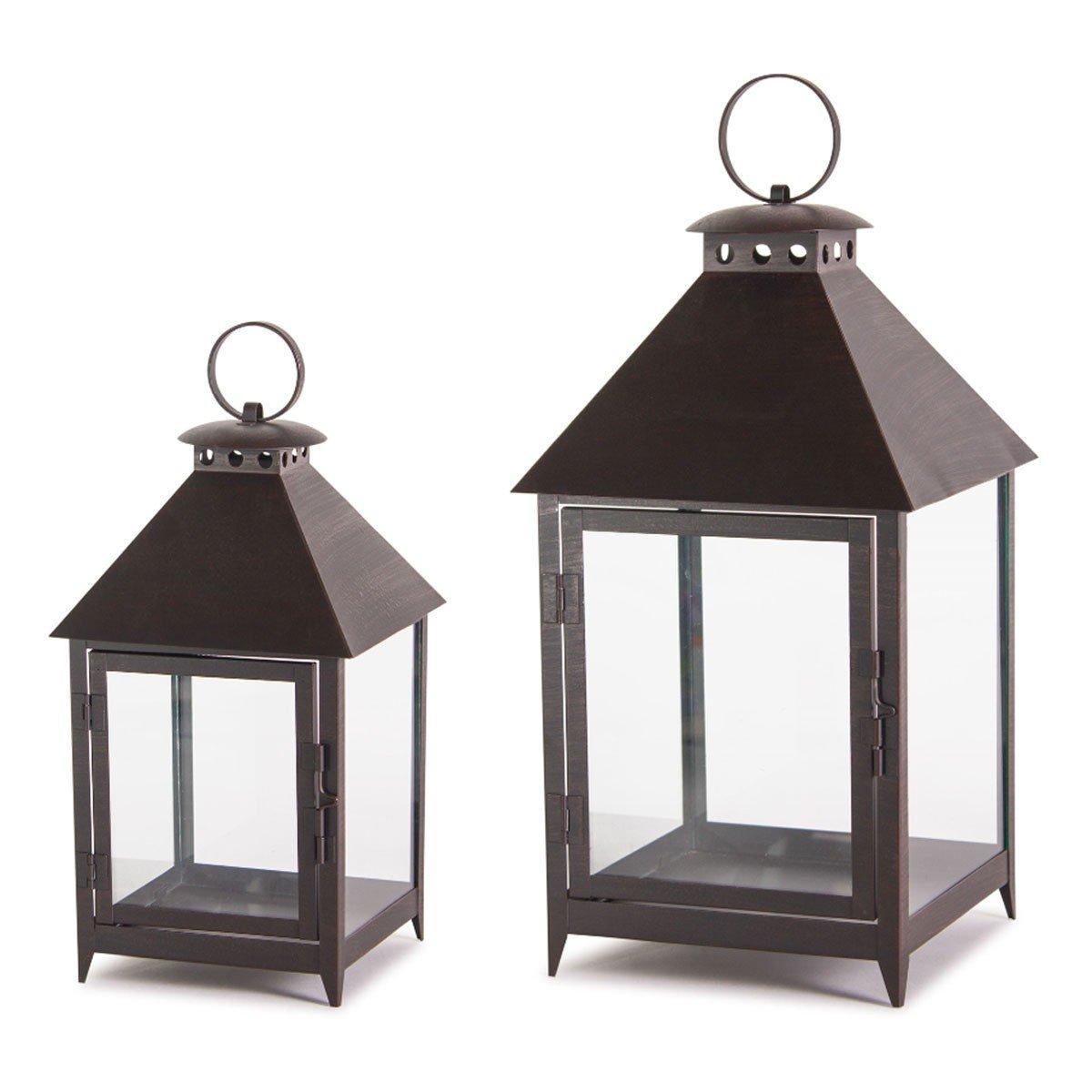 Melrose International Footed Iron Metal Lantern (Set of 2)