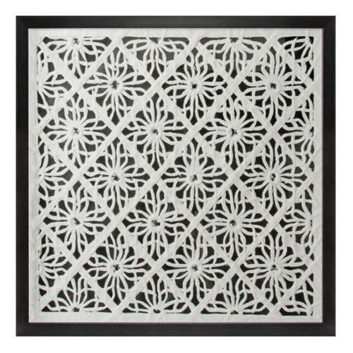 Add a contemporary and sophisticated touch to your space with this Framed Floral Wall Décor. Featuring an elegant geometric floral pattern in a paper mache composition, this piece is set within a sleek black wood frame and highlighted by a white matte outline. The delicate glass covering adds a polished finish while protecting the artwork. The piece comes with two sawtooth hooks on the back for securing it safely to the wall of your home. Perfect for modern or minimalist interiors, this striking piece brings bold yet refined style to any room.