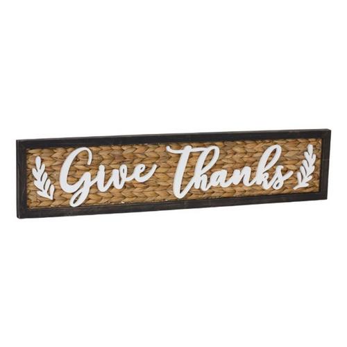 Make your home more festive this season with this Woven Give Thanks Sign! Our charming decor features rusic brown and black tones with the elegant "Give Thanks" sentiment that creates a cheerful atmosphere. Crafted with a quality fir wood frame and woven water hyacinthy back drop, each piece is traditional yet modern, perfect for any home. Celebrate the season of gratitude with the Give Thanks sign!