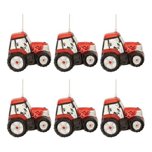 Melrose International Glittered Glass Tractor Ornament (Set of 6)