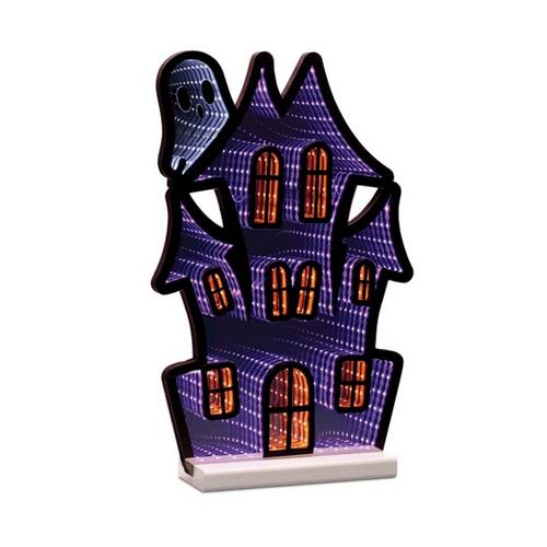 Set the perfect spooky scene this Halloween with the Haunted House with Ghost Ekkolight. This eerie yet enchanting piece features a haunted house design with a floating ghost, all illuminated by built-in LED lights for a chillingly beautiful glow. Perfect for tabletops, mantels, or Halloween displays, it brings a supernatural vibe to your festive décor.